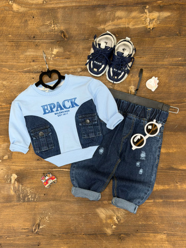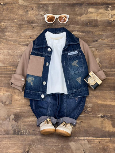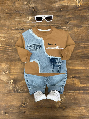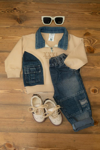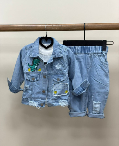 ست سه تیکه جین دایناسور رنگی۲۴۰