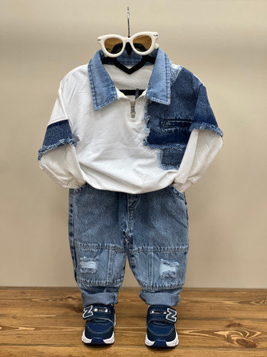 ست سه تیکه جین دایناسور رنگی۲۴۰